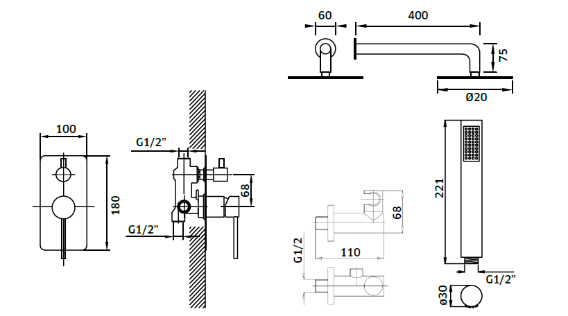Kit de Duche 2 Vias